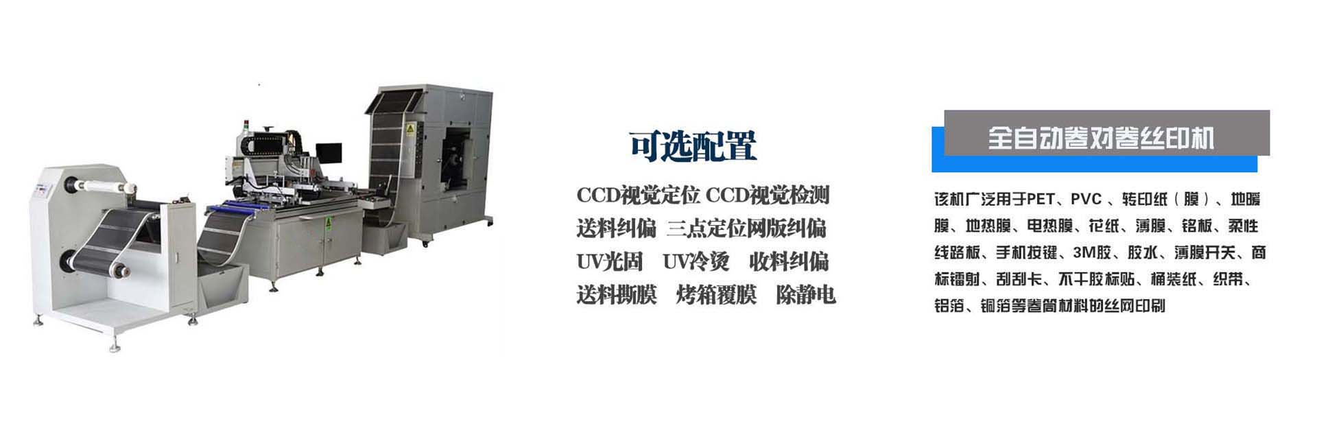 我司主要生產(chǎn)全自動(dòng)絲印機(jī),全自動(dòng)卷對(duì)卷絲印機(jī),全自動(dòng)薄膜開(kāi)關(guān)絲印機(jī),全自動(dòng)熱轉(zhuǎn)印膜絲印機(jī),全自動(dòng)無(wú)紡布絲印機(jī),全自動(dòng)電熱膜絲印機(jī),全自動(dòng)電路板絲印機(jī),卷料商標(biāo)標(biāo)簽絲印機(jī),電熱膜凹印機(jī),涂布機(jī),全自動(dòng)切片機(jī).imd設(shè)備,imd熱壓成型機(jī),數(shù)控3D沖切機(jī),鋰電池卷繞機(jī),電熱膜覆合機(jī),覆膜機(jī),倒卷機(jī),簡(jiǎn)易分條機(jī),打孔機(jī)等設(shè)備